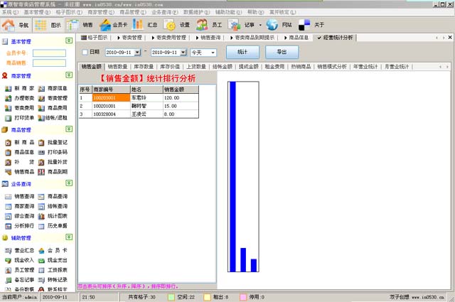 强大的报表查询功能,可以查询商家的租铺信息和价格,及商品的销售信息和补货记录,库存情况等,内容详细方便店主与格主结算.另外店主与格主的所有结帐记录都可以查询得到,避免产生质疑纠纷.